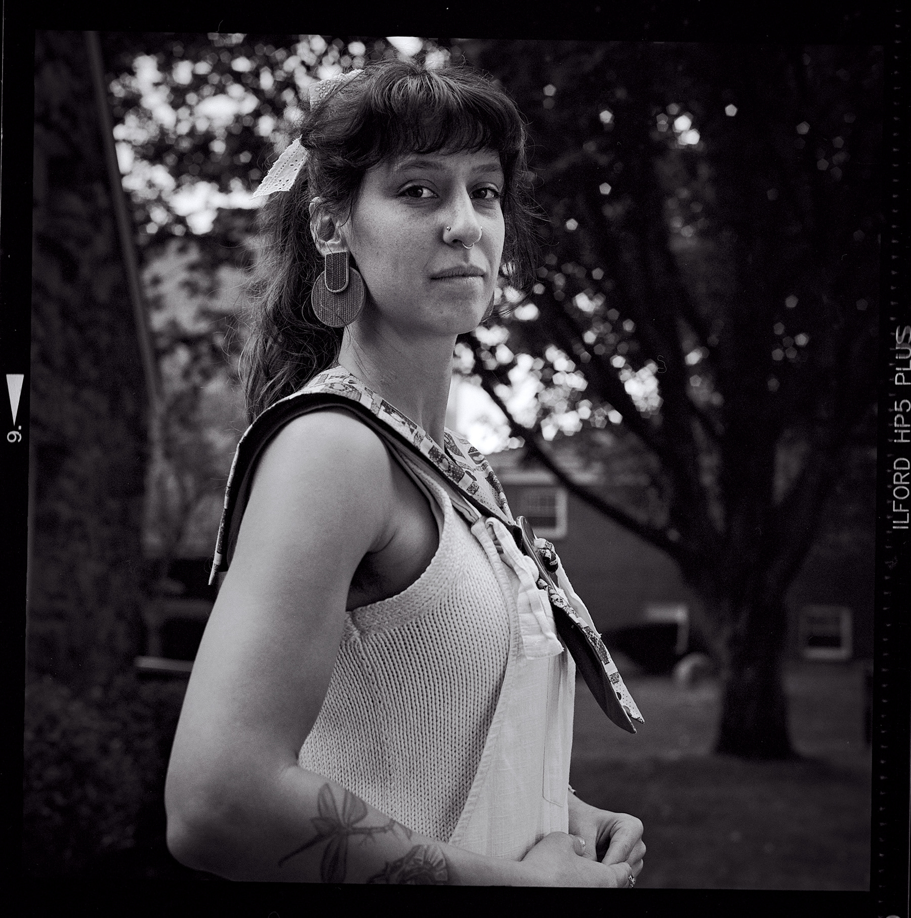 Sophie Adams (b. 1997, Boston, MA) is a photographer and multimedia artist whose work explores themes of bodily autonomy and healing through cinematic portraiture and fiber. After studying interdisciplinary, technology-focused arts in Colorado, she returned to the Boston area, where she maintains a studio in Central Square, Cambridge.